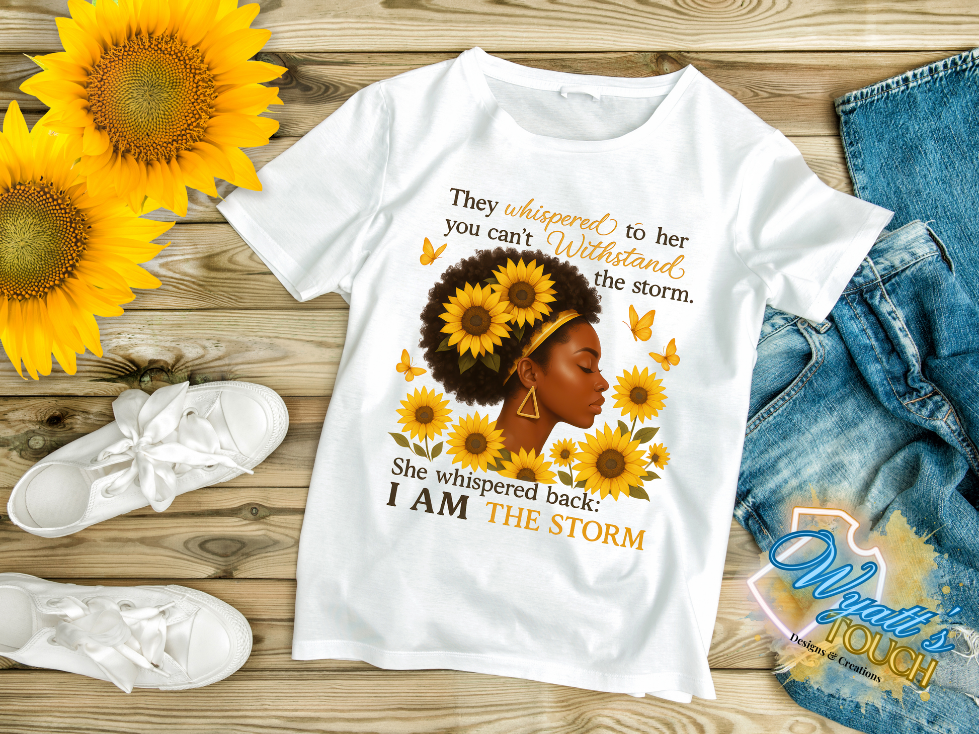 🌻 “I Am The Storm” Sunflower Afro Tee